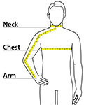 | Chest | 20 1/4 | 21 3/4 | 23 1/4 | 24 3/4 | 26 1/4 | 28 1/4 | 30 1/4 | 18 3/4 |
