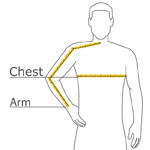 | Chest | 21 1/2 | 23 | 24 1/2 | 26 | 27 1/2 | 29 1/2 | 31 1/2 | 20 |